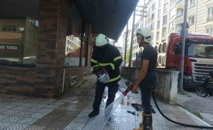 Olay, Mehmet Akif Ersoy Caddesi’nde meydana geldi. Edinilen bilgiye göre, Cemile Seden (75) evde tutuşan piknik tüpünü 4 kattan aşağı attı. Esnafın ihbarı üzerine olay yerine gelen itfaiye ekipleri yanan tüpe müdahale ederek kısa sürede söndürdü. Atılan piknik tüpünün yoldan geçen yaya veya araca çarpması faciayı önledi.