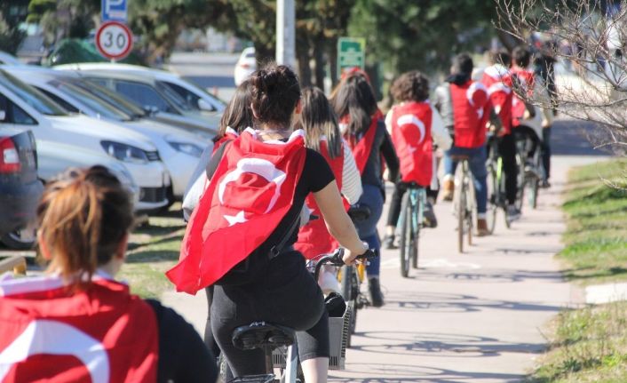 Yapılan etkinlik hakkında bilgi veren Metin Yat, “Burada şehitlerimizin yanında olduğumuzu göstermek adına böyle bir etkinlik düzenlemek istedik. Çobanlı İskelesi’nden Körfez Mahallesi’ne kadar sırtımızda bayraklarla şehitlerimizi yalnız bırakmadığımızı göstermek adına bisiklet sürüşü yaptık. Burada üniversitenin farklı bölümlerinden gönüllü arkadaşlarımız var. Biz sadece bununla da kalmayacağız. Bir köy okuluna da şehitlerimiz adına kütüphane oluşturmayı düşünüyoruz” dedi.