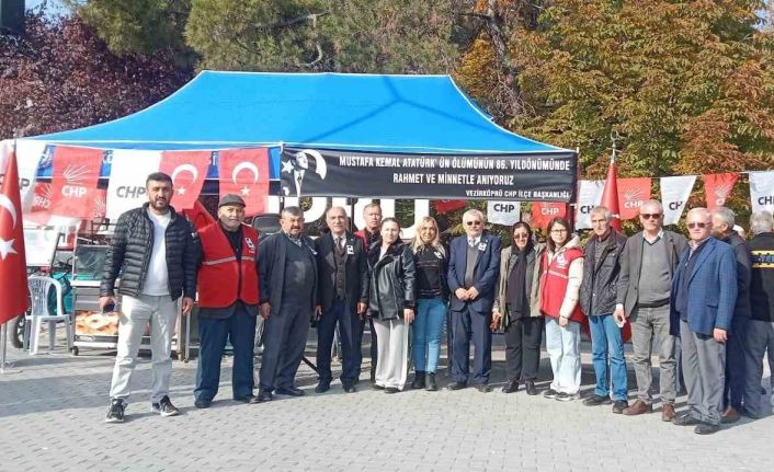 Gazi Mustafa Kemal Atatürk’ün ölüm yıldönümü nedeniyle CHP Vezirköprü İlçe Başkanlığı, Köprülü Mehmet Paşa Parkı’nda vatandaşlara lokma ikramında bulundu. CHP İlçe Başkanı Nazım Kale, "Cumhuriyetimizin ve partimizin kurucu Büyük Önder Mustafa Kemal Paşa’yı ölümünün 86.yılında saygıyla, rahmetle ve minnetle anıyoruz. Ruhu şad olsun" dedi.