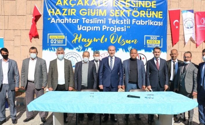 Akçakale Belediye Başkanı Mehmet Yalçınkaya’nın öncülüğünde Karacadağ Kalkınma Ajansı’nın desteği ile ilçeye yapılacak olan Tekstil Fabrikası’nın protokolü imzalandı. Fabrika tamamlandığında ilçeye ilk kez kamu eliyle bir fabrika kazandırılmış olacak ve yaklaşık bin kişiye istihdam sağlanacak.