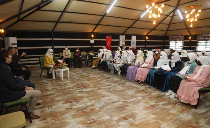Eyyübiye Belediye Başkanı Mehmet Kuş, Akabe Kadın Destek Merkezinde Kuran-ı Kerim öğrenen kursiyerlerin hatim programına katılıp, kursiyerlere çeşitli hediyeler verdi.