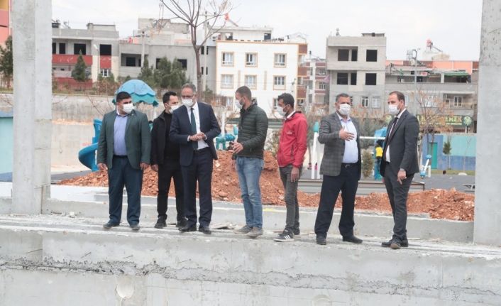 Eyyübiye Belediyesi, 1200 metre kare kapalı alana sahip, Yarı Olimpik Yüzme Havuzu yapım çalışmalarını inceledi.