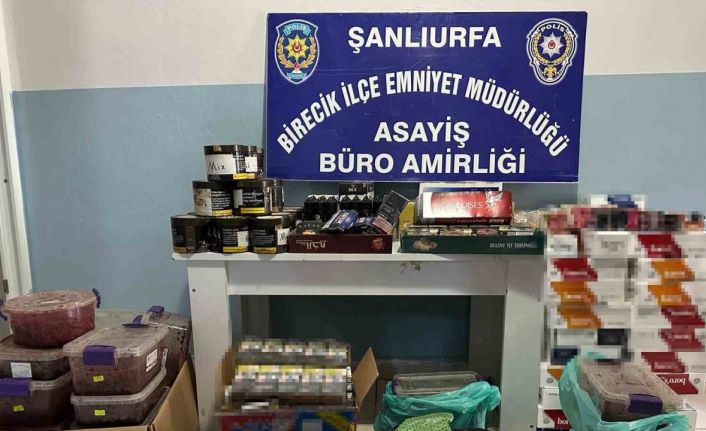 Şanlıurfa’nın Birecik ilçesinde polis ekiplerince düzenlenen operasyonda çok sayıda kaçak ürün ele geçirildi, 3 şüpheli gözaltına alındı.
