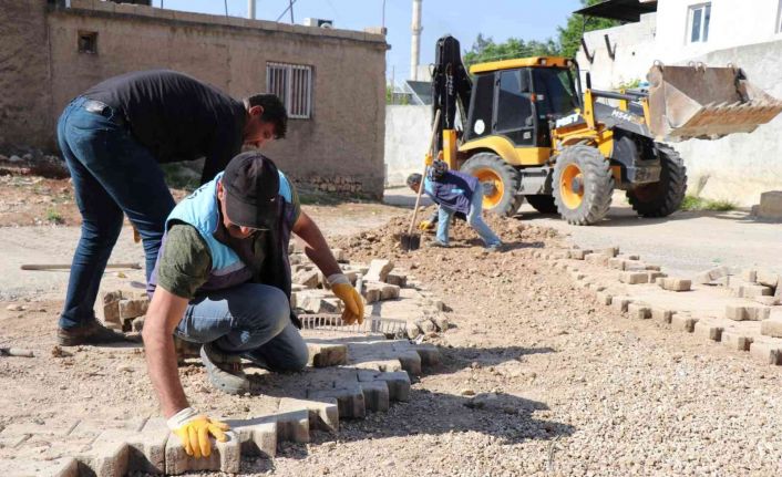 Bozova’da bozulmuş yollardaki parke taşları yenileriyle değiştiriliyor.