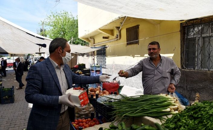 Ceylanpınar Belediyesi, dezenfekte çalışmalarına yoğun bir şekilde devam ederke bir yandan davatandaşlara maske dağıtımını sürdürüyor. Semt pazarlarında sosyal mesafe ve maske kullanımına dikkat eden zabıta müdürlüğüne bağlı ekipler, maskesi olmayan esnaf ve vatandaşlara maske ile eldiven dağıttı.