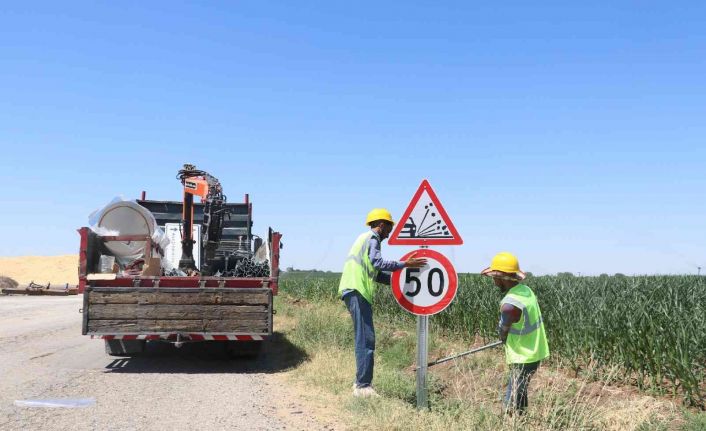 Şanlıurfa Büyükşehir Belediyesi, Ulaşım Daire Başkanlığı Trafik Hizmetleri Şube Müdürlüğü, Ceylanpınar ilçesinde trafik akışını rahatlatan trafik tanzim levhalarını bir yandan yenilerken, diğer yandan da yeni açılan yollara da levha yerleştirme çalışması gerçekleştiriyor.