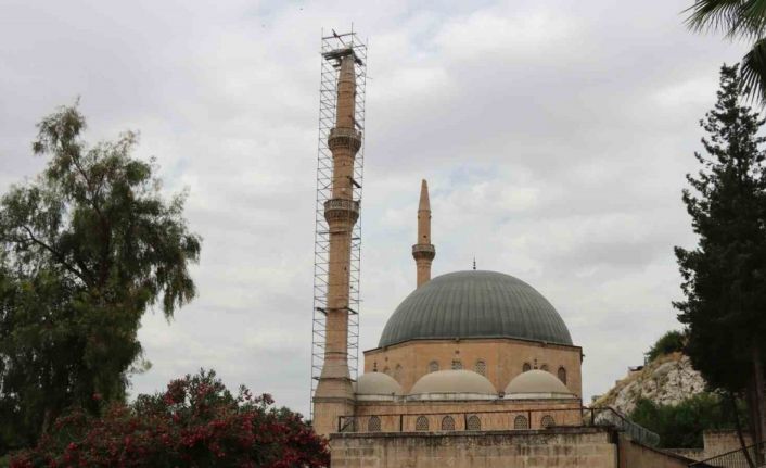 Şanlıurfa Büyükşehir Belediyesi, 6 Şubat’ta meydana gelen Kahramanmaraş merkezli iki depremin ardından hasar alan Balıklıgöl platosundaki Dergah Camisinin minaresinde bakım ve onarım çalışmasını sürdürüyor.