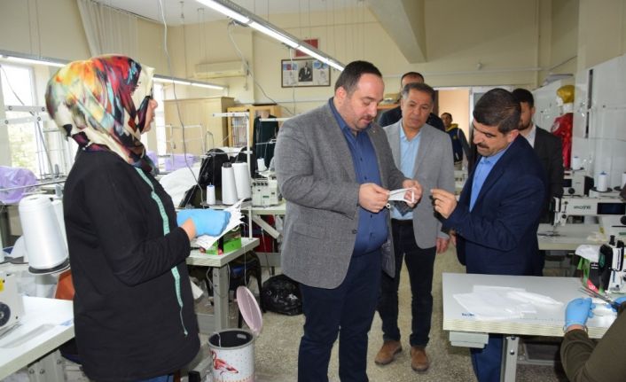 Viranşehir Belediye Başkanı Salih Ekinci, tulum ve maske üreten atölyeyi ziyaret etti.