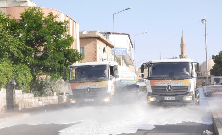 Haliliye Belediyesi, korona virüs salgını ile mücadeleyi gevşetmeden sürdürüyor. İlçe geneli alına tedbirler uygulanmaya devam ediyor. Bu kapsamda temizlik ve dezenfekte ekipleri, son olarak Hızmalı, Atatürk ve Şehitlik mahallelerinde bulunan cadde ve sokakları köpüklü su ile yıkayarak dezenfekte etti.