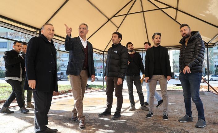 Eyyübiye Belediye Başkanı Mehmet Kuş, Batıkent Mahallesinde yapımı devam eden eğitim otağı, botanik park, tenis kortu ve çok amaçlı salon inşaatı çalışmalarını yerinde inceledi.