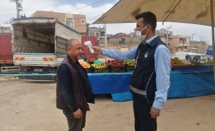 Eyyübiye Belediyesi korona virüs salgınına karşı korunma tedbirleri kapsamında yürüttüğü çalışmalarına ara vermeden devam ediyor. Çalışmalar kapsamında Zabıta Müdürlüğüne bağlı ekipler, semt pazarlarına giriş ve çıkışlarına şerit çekip yapan hem pazara gelen vatandaşların hem de esnafın ateşlerini ölçüyor.
