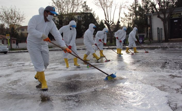 Dünyayı etkisi altına alan korona virüs salgınıyla mücadele kapsamında adeta seferberlik başlatan Eyyübiye Belediyesi, salgının görülmeye başladığı ilk günden itibaren alınan tedbirler kapsamında çalışmalarına devam ediyor. Eyyübiye Belediyesi Temizlik İşleri Müdürlüğü bünyesinde oluşturulan virüs timi ile ilçenin dört bir köşesinde köşe bucak temizlik yapan ekipler, köpüklü su ve deterjanla ana cadde ve sokakları yıkıyor. Ara sokaklarda da hummalı bir şekilde sürdürülen çalışmalar vatandaşların yoğunluk oluşturduğu her alanda titiz bir şekilde yapılıyor.