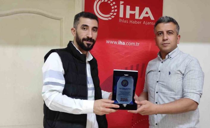 Şanlıurfa’da toprak sahada antrenman yaparak TFF 2. Lig’e çıkma başarısı gösteren Güneşin Çocukları Spor Kulübü’nün ilk haberini yapan İhlas Haber Ajansı (İHA) muhabiri Bekir Şeyhanlı’ya teşekkür plaketi takdim edildi.