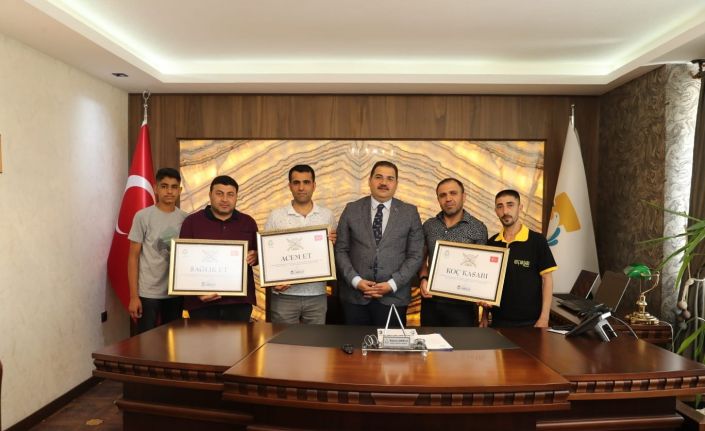 Haliliye Belediye Başkanı Mehmet Canpolat, insan sağlığına ve hijyene önem vererek “Altın Bıçak” ve “Altın Makas” unvanını almaya hak kazanan esnafa sertifikalarını verdi.