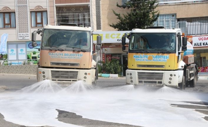 Haliliye Belediyesi, pandemi süresinde korunma tedbirleri ve ilçenin temizliği için çalışmalarını sürdürüyor.
