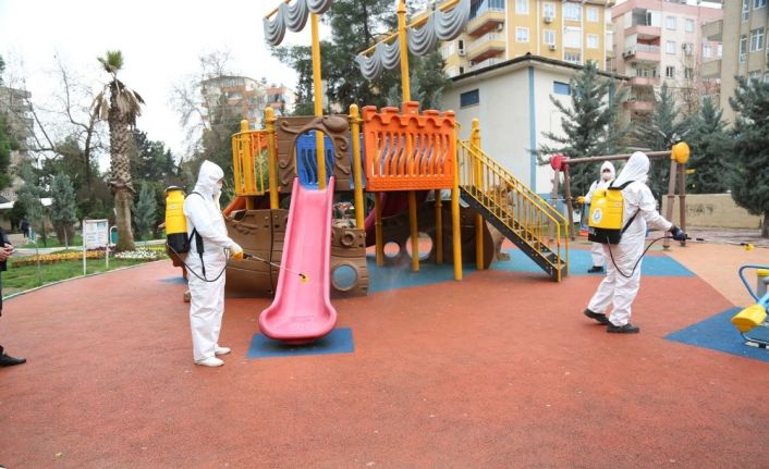 Haliliye Belediyesi, dünyayı kasıp kavuran korona virüs salgınından (Covid19) korunma tedbirleri kapsamında başlattığı çalışmalara yoğun bir şekilde devam ediyor. Salgına karşı seferber olan ekipler ilçe genelinde bulunan tüm parkları dezenfekte ediyor.