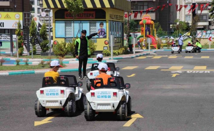 Şanlıurfa Valiliği koordinesinde Haliliye Belediyesi, İl Emniyet Müdürlüğü ve İl Milli Eğitim Müdürlüğü işbirliğinde çocuk trafik eğitim parkı minik misafirlerini ağırlamaya devam ediyor.