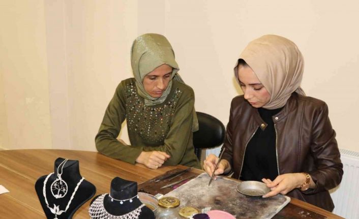 Şanlıurfa Büyükşehir Belediyesi 11 Nisan Kadın Kültür ve Eğitim Merkezinde açılan gümüş takı işlemeciliği telkâri kursuna kadınlar yoğun ilgi gösteriyor.
