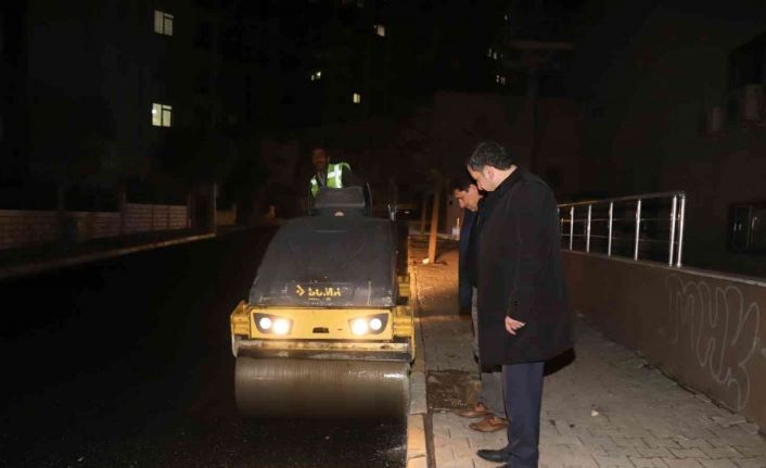 Karaköprü’de bozulan yollar sıcak asfalt serilerek yenilerken Karşıyaka Mahallesinde gece mesaisinde gerçekleştirilen asfaltlama çalışmasını Başkan Metin Baydilli de inceledi