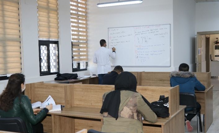 Karaköprü Belediyesi, sınavlara hazırlanan öğrencilere destek olmak amacıyla matematik dersi veriyor. Okuma salonlarında verilen derslerde sınavlara yönelik konu anlatımı ve soru çözümü yapılıyor.
