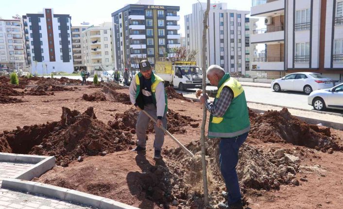 Karaköprü Belediyesi yemyeşil bir ilçe için kazandırdığı yeni parklarda ağaçlandırma çalışmalarını gerçekleştiriyor.
