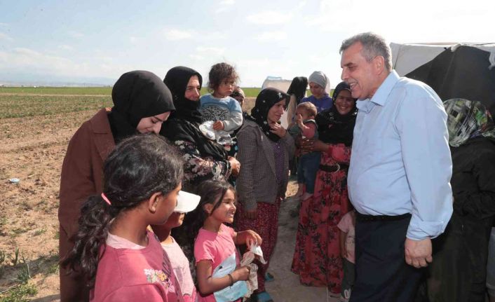 Kendilerini ziyaret eden Şanlıurfa Büyükşehir Belediye Başkanı Zeynel Abidin Beyazgül ile kucaklaşan Şanlıurfalı tarım işçileri memleket hasreti giderdi.
