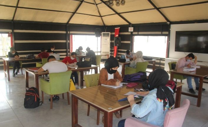 Eyyübiye’de öğrenciler korona virüs tedbirlerine uygun şekilde üniversite sınavlarına hazırlanıyor.