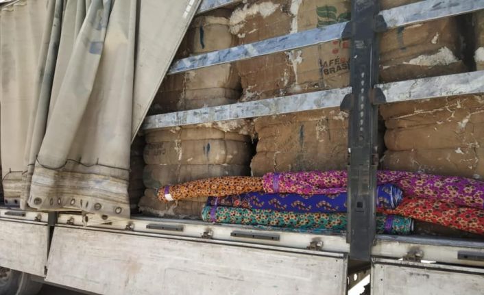 Şanlıurfa’nın Akçakale ilçesinde Suriye’den Türkiye’ye pamuk taşıyan tırda yapılan aramada her biri 100 metreden oluşan 18 rulo gümrük kaçağı kumaş ele geçirildi.