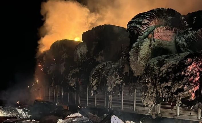 Pamuk yüklü tır alev aldı