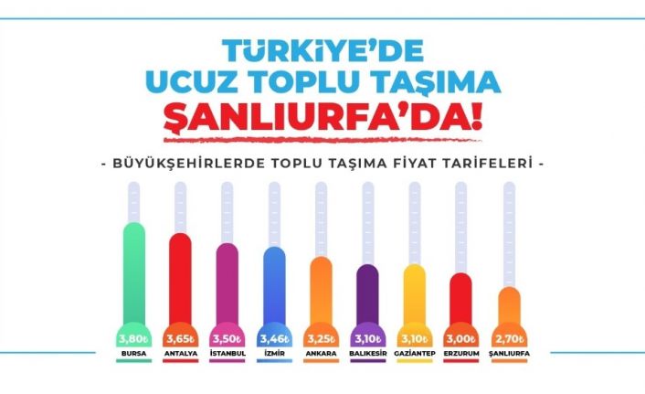 Büyükşehirlerin kahir ekseriyeti içerisinde en ucuz toplu taşıma Şanlıurfa Büyükşehir Belediyesince yapılmaktadır.