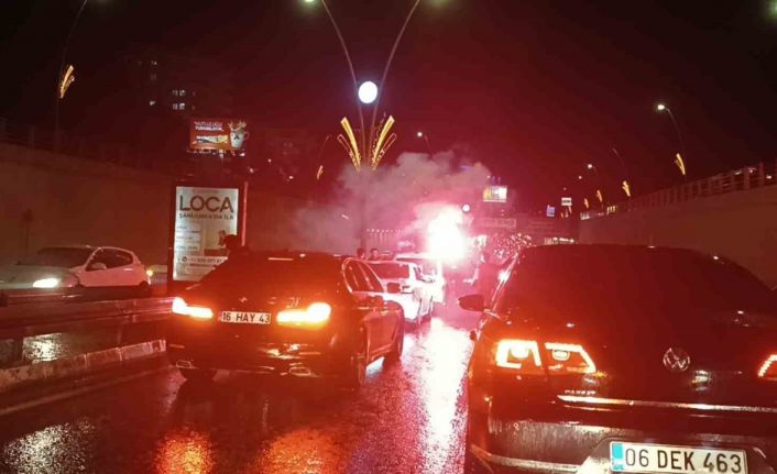 Maçın bitiş düdüğü ile birlikte dışarı çıkan vatandaşlar, araçlarıyla konvoy oluşturdu. Galatasaray’ın renklerini taşıyan bayrakları sallayan taraftarlar, galibiyeti coşkuyla kutladı. Kutlamalara Fenerbahçe forması giyen bazı vatandaşların da kendi takımlarının bayraklarını sallayarak kutlamalara katılan eşlik ettikleri gözlendi.