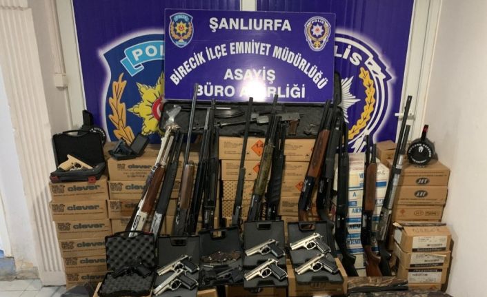 Edinilen bilgiye göre, Birecik İlçe Emniyet Müdürlüğü ekiplerince gerçekleştirilen istihbarat çalışması sonucunda, ilçede av malzemeleri satışı yapan iş yeri olan H.K.’nin kaçak silah ve mermi sattığı tespit edildi. Şüpheliye ait depoda yapılan aramada, 38 av tüfeği, bir kalaşnikof piyade tüfeği, bir tabanca, 11 kurusıkı tabanca, farklı çaplarda 52 av tüfeği namlusu, 72 şarjör borusu, 27 tüfek dipçiği, 32 bin 750 av tüfeği fişeği, ile tabanca ve kalaşnikof piyade tüfeği fişekleri ele geçirildi. Olaya ilişkin H.K. gözaltına alındı.