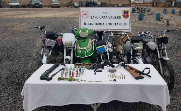 Şanlıurfa’nın Viranşehir ilçesinde jandarma ekipleri, 6 motosiklet çalan hırsızı silah ve uyuşturucu madde ile birlikte yakaladı.