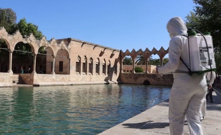 Yüzlerce yerli ve yabancı turistin yeni normalleşmeye uygun olarak ziyaret ettiği Balıklıgöl başta olmak üzere Dergah Camii ve Hz. İbrahim Mağarası, Şanlıurfa Büyükşehir Belediyesi ekiplerince dezenfekte edildi. Özel anti bakteriyel kıyafetli personellerin kullanıldığı dezenfekte işleminde oldukça hassas davranıldı.