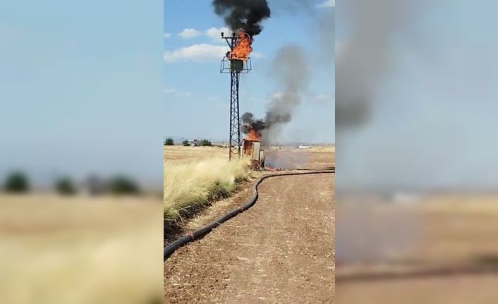 Şanlıurfa’nın Viranşehir ilçesinde tarım sulamasında kullanılan trafoda çıkan yangın korkuttu. Alev alev yanan trafo, itfaiye ekiplerince kontrol altına alındı.