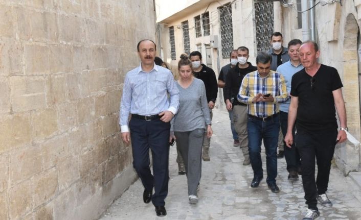 Şanlıurfa Valisi Abdullah Erin, Vilayetler Hizmet Birliğine devredilen Kurtuluş Mahallesindeki tarihi evlerde yapılan çalışmaları inceledi.