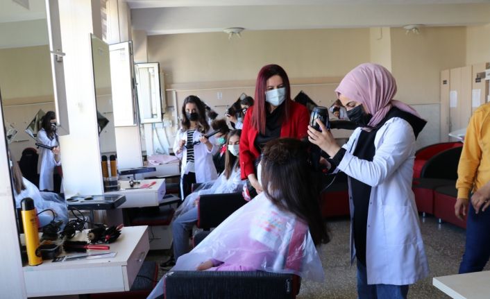 Siirt Valisi Hacıbektaşoğlu’nun eşi Güney Hacıbektaşoğlu, Zeynep Hatun Mesleki ve Teknik Anadolu Lisesi bünyesinde başlatılan ’Meslek Liseleri Ailelerle Buluşuyor Projesi’ kapsamında okulun güzellik bölümü öğrencileri tarafından, farklı okullarda okuyan özel eğitim öğrencilerinin saç ve temel bakımları etkinliğine katıldı. Burada öğrencilerle sohbet eden Hacıbektaşoğlu, öğrencilere çeşitli hediyeler takdim etti.