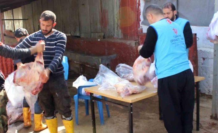 Siirt’te vatandaşlar tarafından bağışlanan hayvanlar kesilerek, etleri 185 depremzede aileye dağıtıldı.