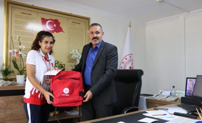 Kısacık, daha sonra sporculara antrenman çantası hediye etti.