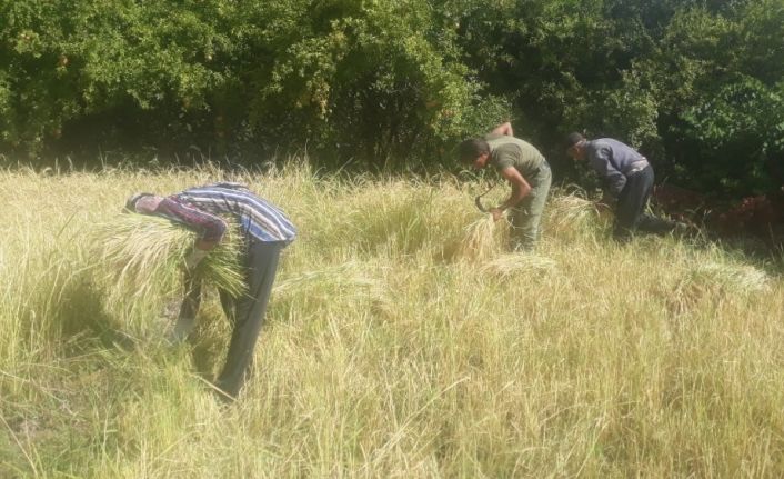 Siirt’in Tillo ilçesine bağlı Hatrant köyünde çiftçiler, dedelerinden kalma yöntemlerle ektikleri pirinç hasadına başladı.