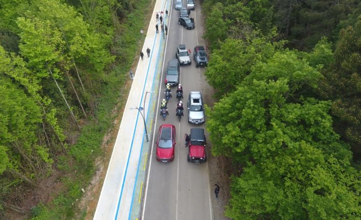 Anadolu kırmızısı renkli Togg otomobil, Türkiye’nin en kuzeyi Sinop’ta havadan görüntülendi.