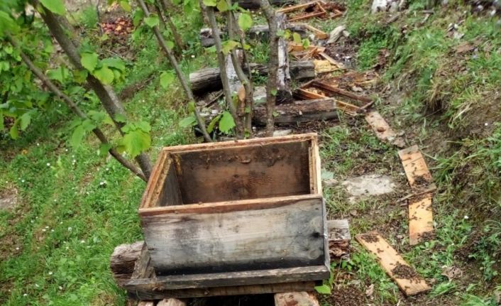 Ayılar, evin yanındaki arı kovanlarını parçaladı