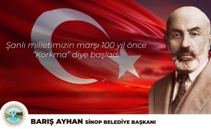 Sinop Belediye Başkanı Barış Ayhan, “Bağımsızlığımızın sembolü Milli Marşımız; cephelerde can pahasına verilen mücadelenin, eşsiz vatan aşkının ve tam bağımsız özgür Türkiye ideali ile toprağa düşen aziz şehitlerimizin destansı mücadelesini yansıtan ölümsüz değerimizdir” dedi.