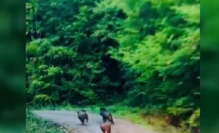 Sinop’ta yolda giden 3 domuz kameraya yakalandı.