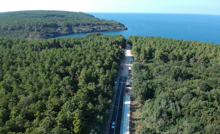 Sinop’ta tabiat harikası Hamsilos’ta bisiklet ve yaya yolu asfaltlama çalışmaları sürüyor. Çalışmalar dron ile havadan görüntülendi.