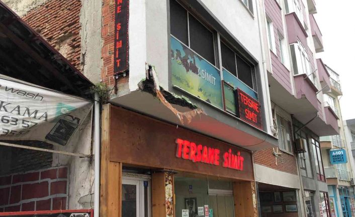 Sinop’ta dar sokakta seyir halindeki kamyon bir iş yerinin ikinci katındaki duvara çarptı.