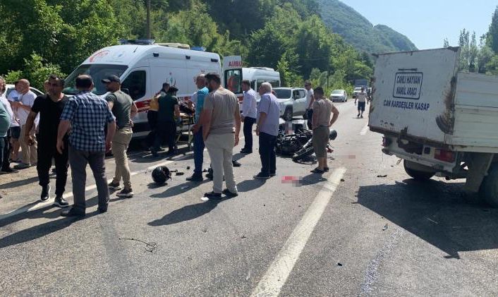Sinop’ta kamyonetle çarpışan motosiklet sürücüsü ağır yaralandı.
