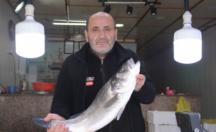 Sinop açıklarında avlanan balıkçıların ağına takılan 4,5 kilo ağırlığındaki levrek, 1800 TL’den satışa sunuldu.