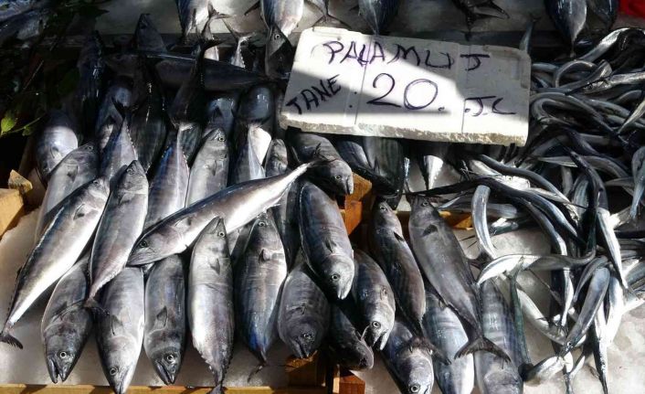 Sinop’ta balık tezgahlarında palamut 20-25 TL’den satışa sunuluyor.