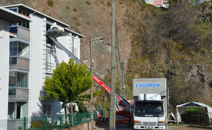Sinop’ta 29 Aralık Çarşamba günü kaya parçasının çarparak zarar verdiği apartmandaki hane sakinleri kendi imkanlarıyla tahliye oldu.